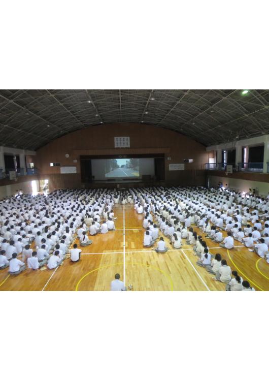 1250名の生徒さんが体育館に集まり真剣な眼差しで講習を聞かれてました